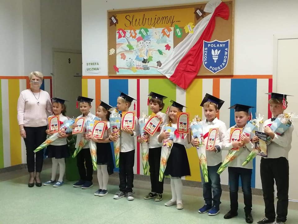 Dnia 12 października odbyła się w naszej szkole uroczystość ślubowania uczniów klas pierwszych. To bardzo ważne wydarzenie nie tylko dla najmłodszych, ale również dla ich rodziców. Zanim pierwszoklasiści zostali przyjęci do grona społeczności szkolnej odświętnie ubrani i bardzo przejęci przystąpili do zaprezentowania swoich umiejętności. Doniosłym momentem uroczystości było ślubowanie pierwszoklasistów, które wzbudziło wiele emocji. Aktu pasowania dokonała pani Dyrektor Izabela Micek. Tym samym 9 pierwszaków zostało włączonych do społeczności uczniowskiej Szkoły Podstawowej w Polanach. Najmłodsi otrzymali wspaniałe upominki. Życzymy wszystkim pierwszakom sukcesów w nauce.